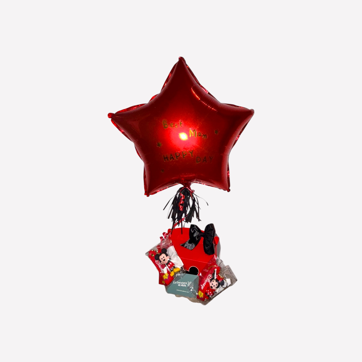 Esta ancheta es perfecta para los amantes de este famoso personaje. Un hermoso globo de helio, con mensaje personalizable, acompaña a los llaveros en pareja, y la hermosa caja, que dentro trae deliciosos dulces variados como: chocolates m&m, ositos de gomita, galletas festival, barrilete y bombonbum. También un precioso reloj de mano femenino y una mini botella de alcohol. Puedes personalizarla enviando un monto en modo regalo. El precio de esta hermosa ancheta es de 35€ con IVA incluido.