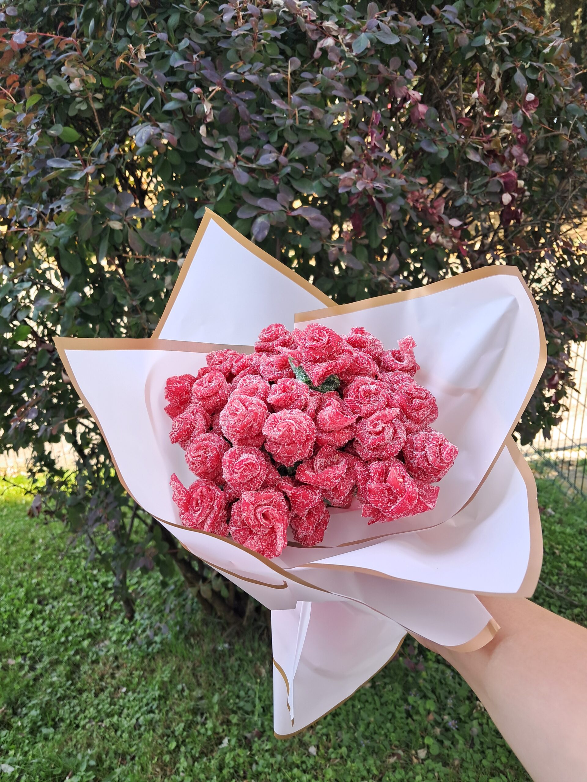 Descubre la fusión perfecta entre la elegancia de las flores y el placer de lo gourmet. Nuestro exclusivo bouquet comestible ha sido cuidadosamente diseñado para sorprender con una presentación sofisticada y sabores exquisitos. Elaborado con ingredientes frescos, naturales y seleccionados, este arreglo es ideal para celebrar momentos especiales con un toque original y delicioso.