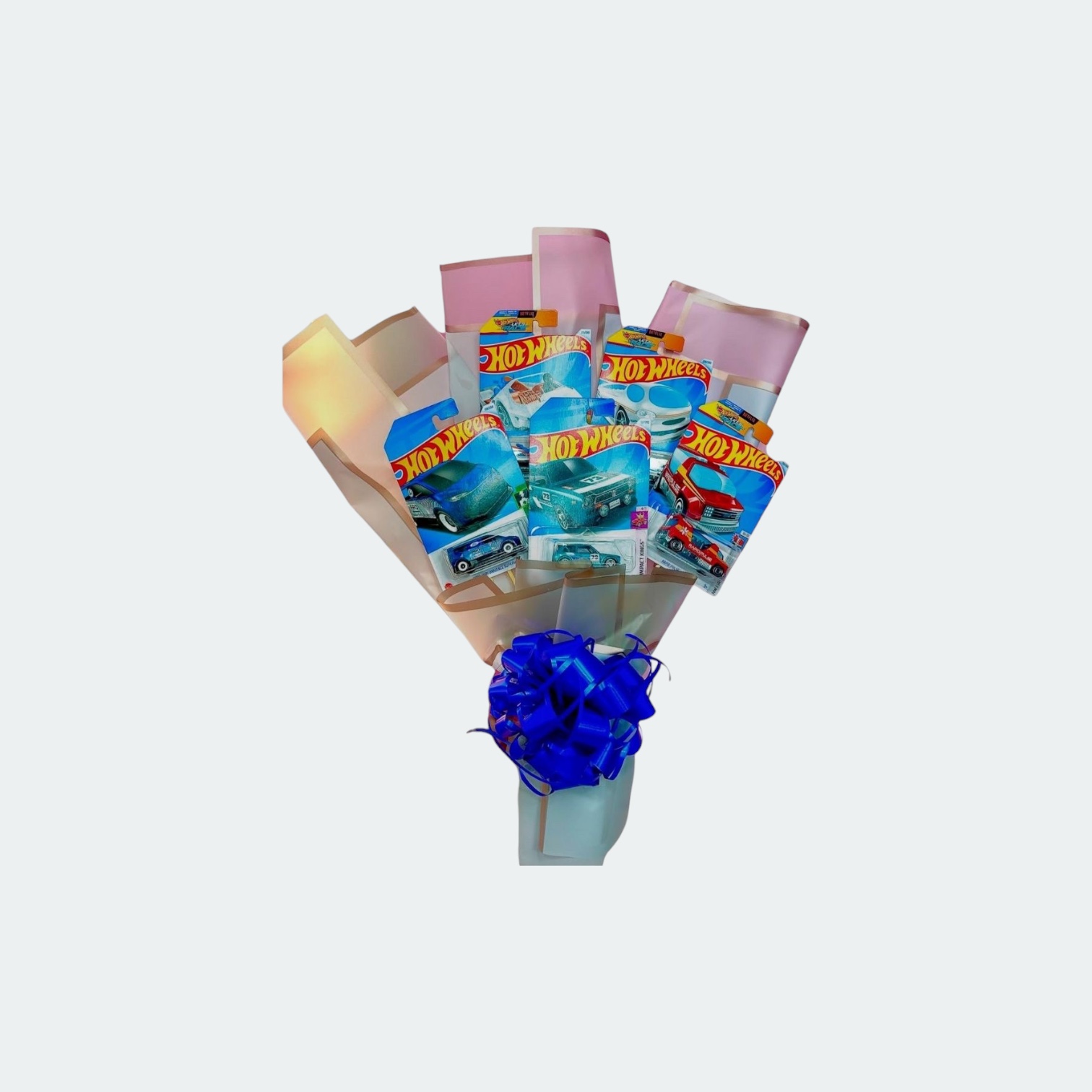Eleva tus ramos a otro nivel con personalizaciones como esta. En este caso para un amante de los motores, un ramo con una pequeña colección de sus modelos favoritos le encantará, Cuéntanos esos gustos especiales y regala un detalle hermoso, personal y emotivo. El precio de este tipo en concreto es de 30€ con IVA incluido.